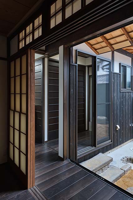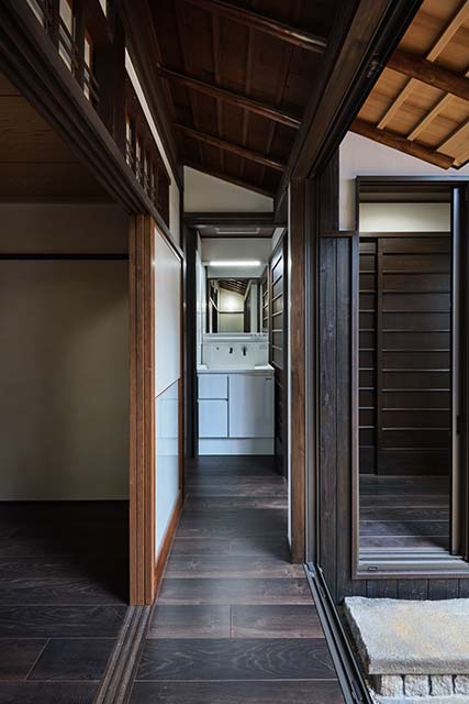 既存の京町家を、構造/限界耐力計算により、伝統工法による修復・補強し、耐震性能を高める構造に、リノベーションしました。 高性能な水廻りや床暖房などの設備機器を組み入れながらも、既存の建具や玄関の敷石を無駄なく再利用し、町家の風情に、快適さをプラス。 お子様のアレルギーに配慮し、仕上材は、自然素材/漆喰や柿渋などを選択され、ご家族で、施工に加わられました。先人の思いを大切に、 京町家が、又ひとつ、次世代に受け継がれる空間に生まれ変わりました。