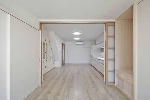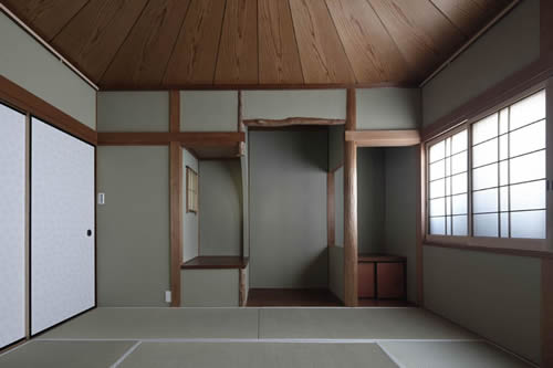 「ストレスを感じない空間」をご提案しました。小屋裏から床下まで、建物全体の「耐震補強」と「断熱性を高める」ことを重視し、構造性能を向上させました。アプローチや、水廻りの見直し、収納スペースの確保など、機能的で明るい空間に生まれ変わりました。奥様からご主人様への贈り物!いつでもお好きな音楽を楽しんで頂ける様に、往年の銘器、VITAVOX(ヴァィタ ヴォックス)の響く素敵な防音室の完成です。